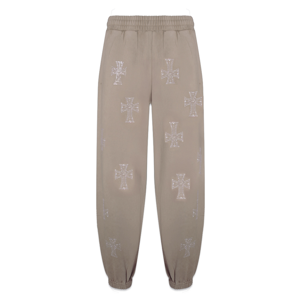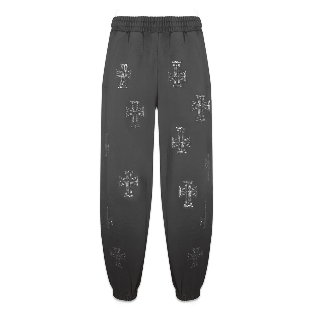 Outline Cross Rhinestone Sweatpants