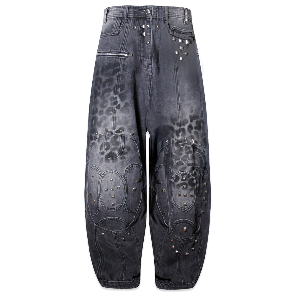 Leopard Waxed Grey Baggy Jeans