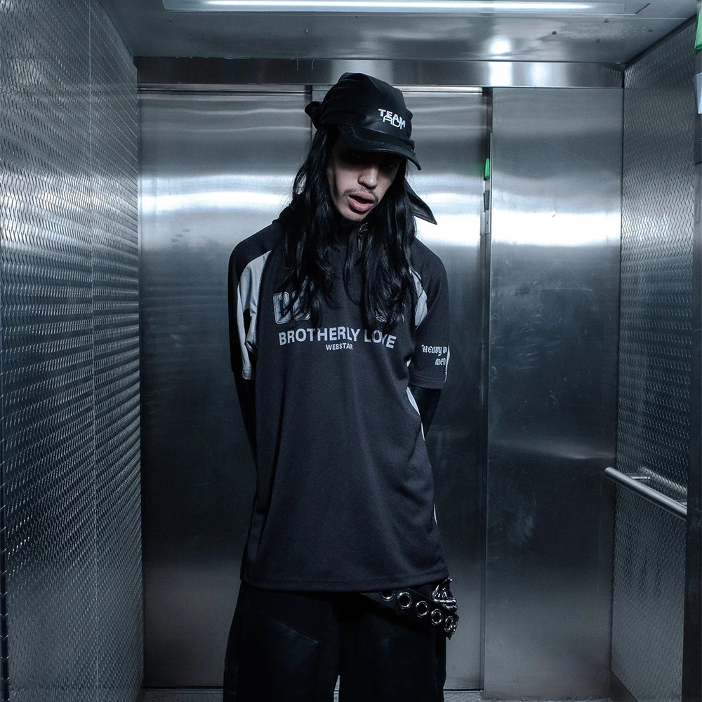 BROTHERLY LOVE(ブラザリー・ラブ) ハイエンド・ストリートウェアブランド。都会的なラグジュアリーと相反する重層感のあるロックやグランジのアンダーグラウンドカルチャーのエッジを融合。大胆なシルエットとグラフィックは単なるストリートウェアを昇華させ、独特なムードと深みを形作っている。アイレットが目を惹くヘッドピースはPlayboi Cartiの着用でも話題に。日本初上陸ブランド。